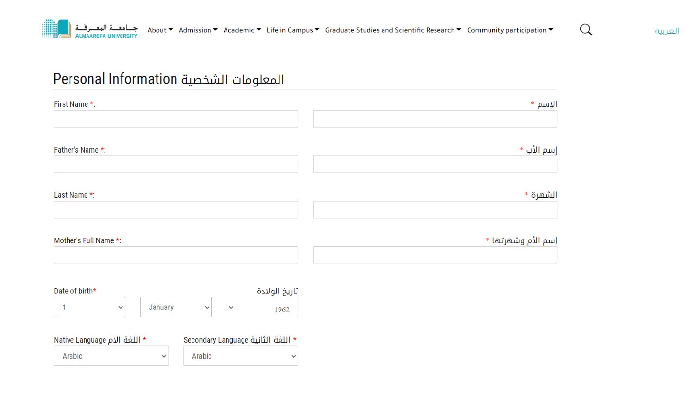 Almaarefa University Register Form