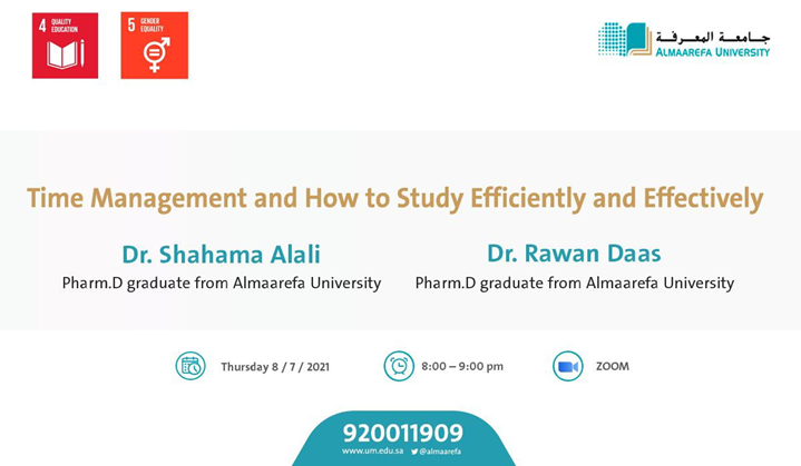 The College of Pharmacy at AlMaarefa University is organizing a lecture entitled: “How to Study Efficiently and Effectively”