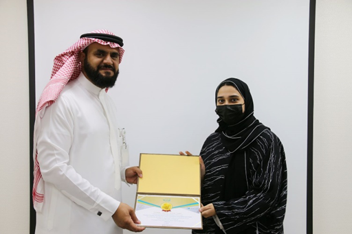 The Dean of the College of Medicine, Advisor to His Excellency the President of the University in AlMaarefa University honors medical student Hosna Mirza for her research excellence at the Twelfth International Congress of Otolaryngology.